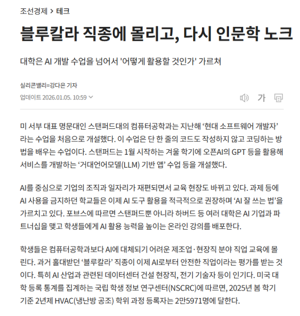 블루칼라 직종에 몰리고, 다시 인문학 노크 - ai 시대 다시 현장으로